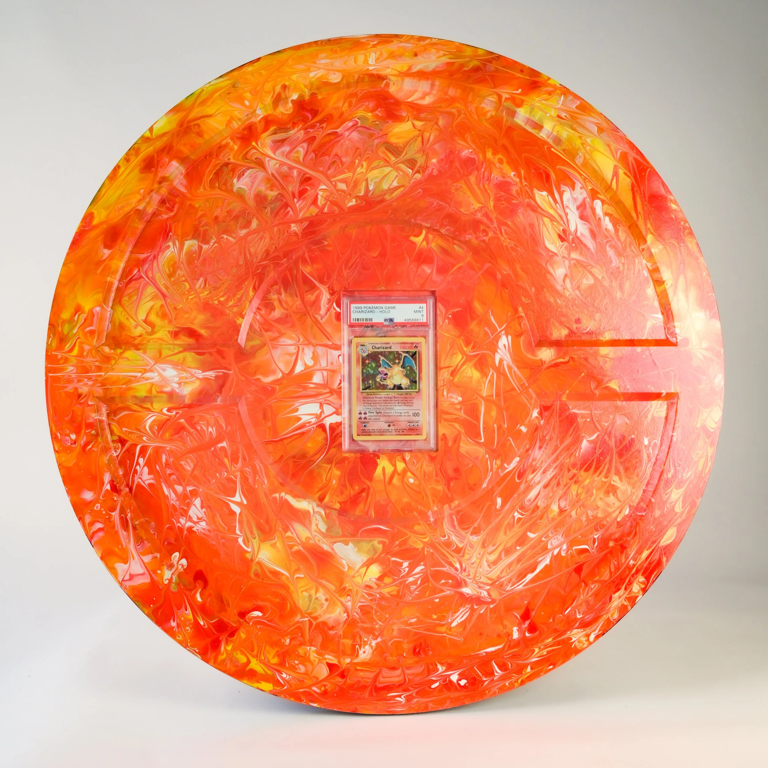 Flames dance across the surface in bold reds and golds, each streak igniting intensity, passion, and the unstoppable force of creation.