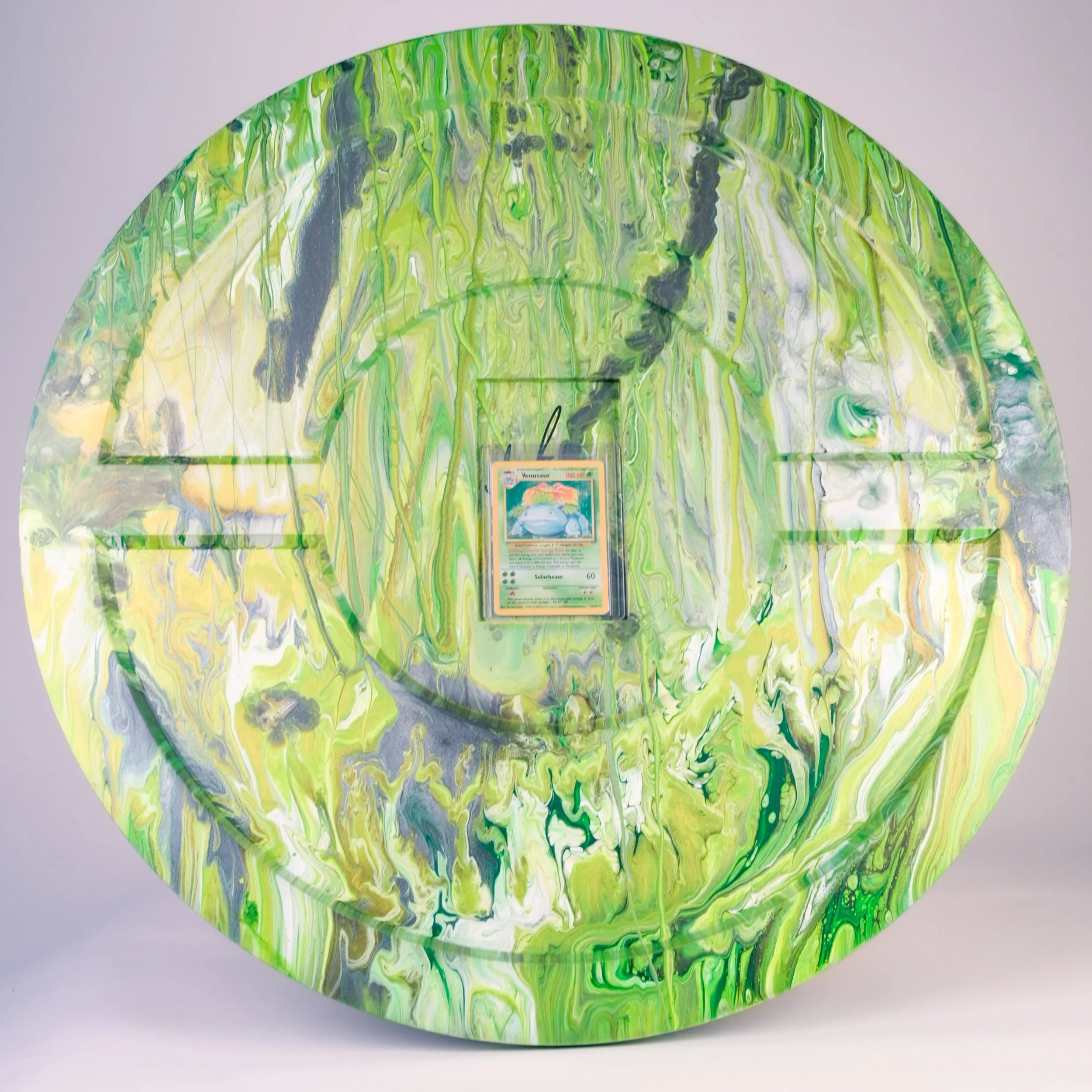 Yellow-green and metallic shades intertwine with touches of forest depth, creating a radiant surface that captures renewal, balance, and living energy.
